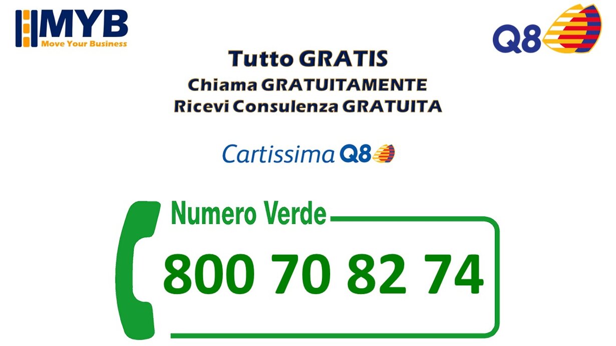 Per una flotta grande o piccola, per automobili o veicoli commerciali, CartissimaQ8 è la carta carburante aziendale che permette di effettuare rifornimenti in Italia offrendo servizi sicuri e personalizzabili. La carta carburante di Q8 è uno strumento di gestione semplificata per i rifornimenti aziendali dedicata alle imprese ed ai professionisti e puoi richiederla solo se titolare di Partita Iva.